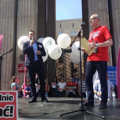 "Minister twierdzi, że na podwyżki wystarczyć miała zwiększona w tym roku subwencja oświatowa. Tyle że Łódź, która dostała 600 milionów od MEN, co roku na edukację wydaje ponad miliard! Dokładamy z własnej kieszeni, bo inaczej musielibyśmy powiedzieć uczniom, że, np. szkoły nie będą oświetlane i ogrzewane, a nauczyciele od sierpnia nie dostaną już wypłaty, bo subwencja z MEN-u właśnie się skończyła" - mówił podczas protestu Tomasz Trela.